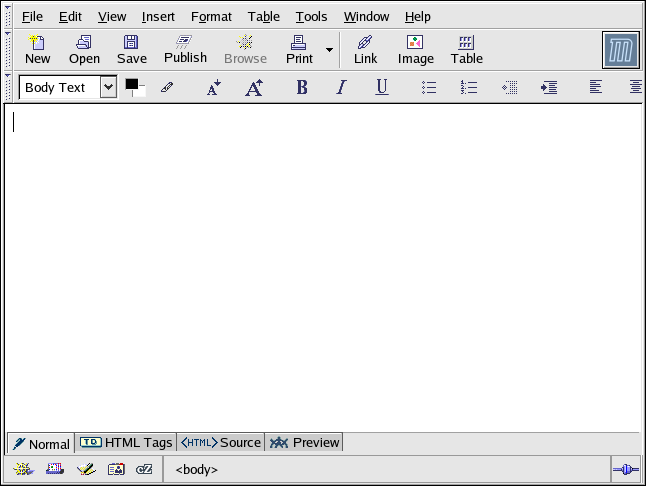 You can use Mozilla Composer to create webpages. You do not need to know HTML to use this tool. To open Composer, click on Window => Composer from the Mozilla main menu, or click on the Composer icon in the lower left part of the screen: .