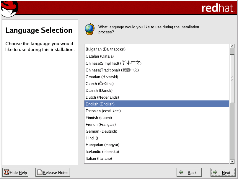Using your mouse, select a language to use for the installation (refer to Figure 2-6).